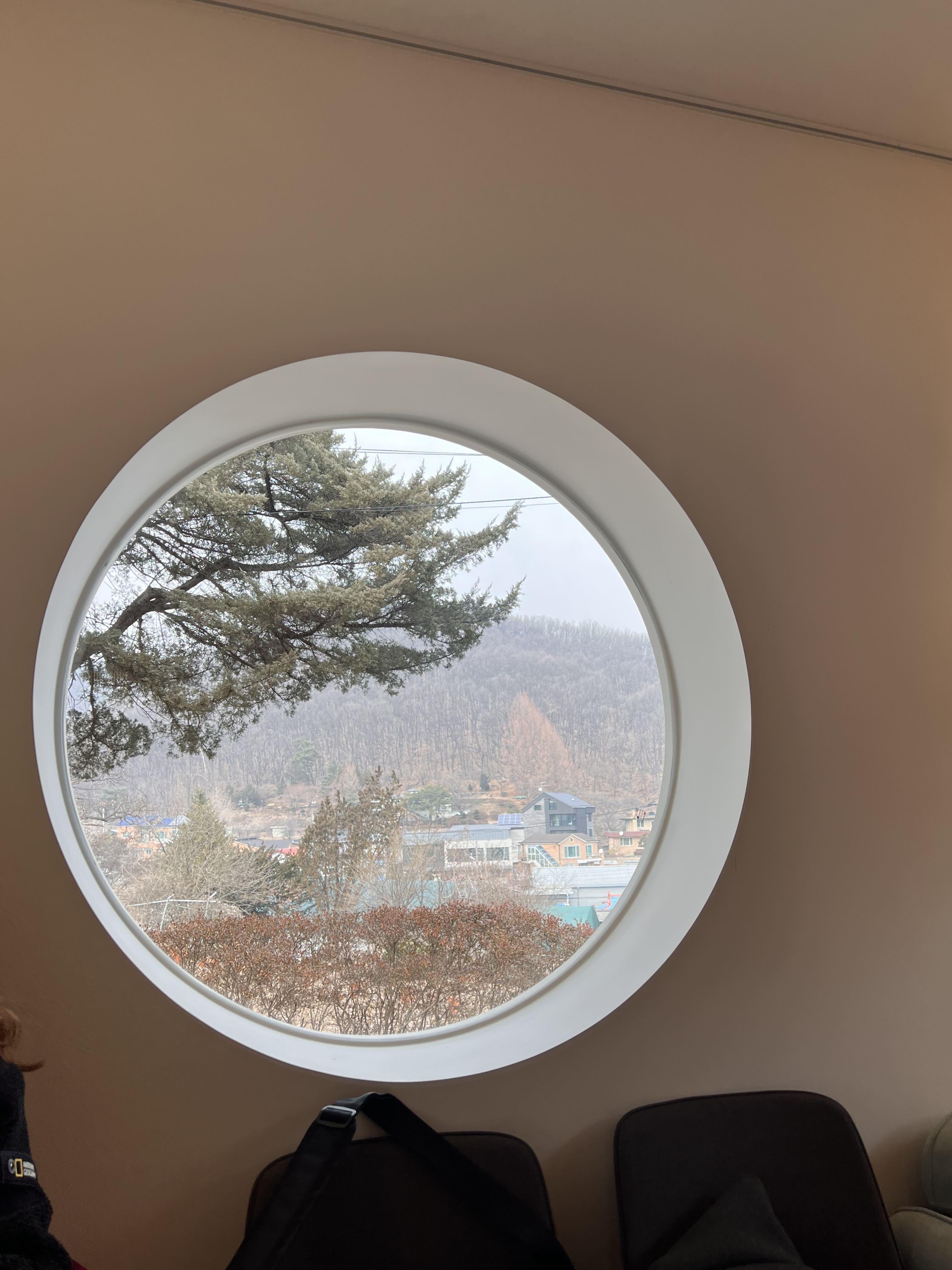 여기 뒤에서 보이는 것 처럼 카페에서는 각각의 자연이 보이는 자리들을 찾을 수 있었습니다.