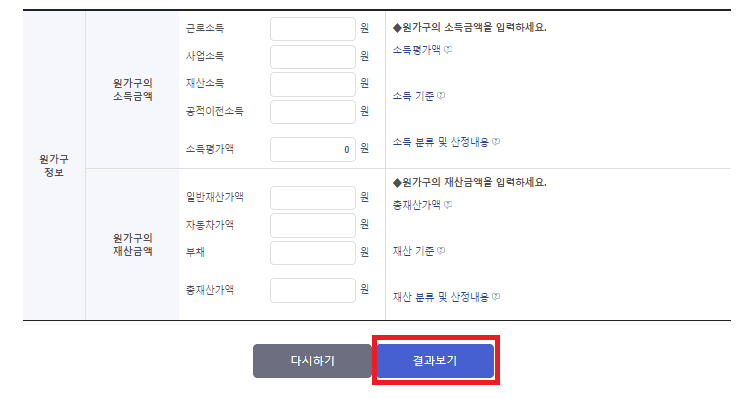 모의계산으로 진행을 하였지만 저는 소득이 조금 있는관계로 지원대상이 아니라는 결과가 나왔습니다.