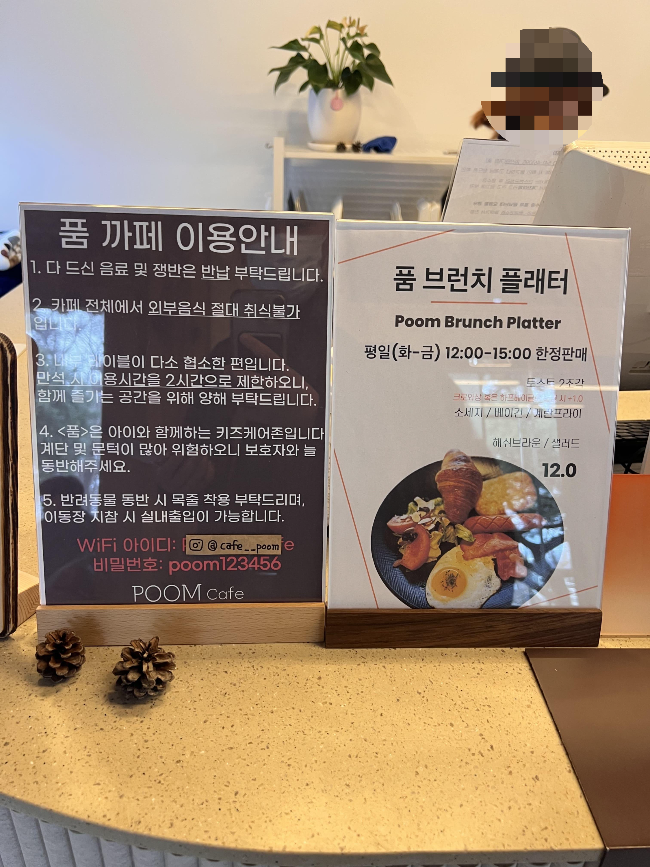 위로 올라오시면 '품' 카페의 영업정보와 휴무일을 보실 수 있는 안내 판이 준비가 되어 있습니다.